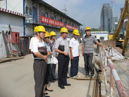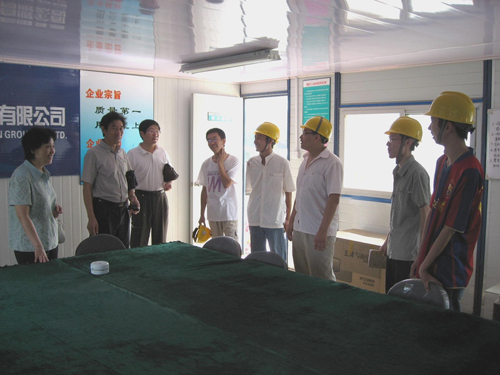 9月9日上午,土木工程学院刘健书记、于广明院长、王燕副院长一行6人来到2005级学生正在进行生产实习的部分工地进行走访,了解学生实习进展情况。在工地上,各位领导与学生亲切交谈,询问实习的内容细节,参观实习场地,了解实习生活;希望同学们珍惜难得的实习机会,主动求教学习、做好笔记,按照要求认真完成实习任务,特别提醒大家要注意人身安全。领导们还与实习单位的负责人员进行了交流,对其能为学生提供实习条件表示感谢,实习单位负责人也对实习学生的表现给予了肯定。