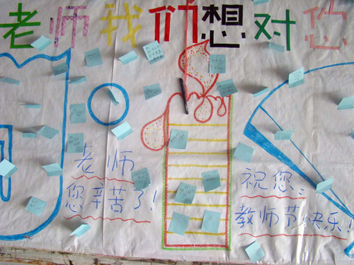 此外,管理学院学生会还开展了“老师,我想对你说”写下祝福活动。二号教学楼大厅的宣传板上贴满了各种小卡片,写满了学生们对老师的祝福。“老师,您辛苦了!”,“老师,谢谢您对我们的培养”,“老师,您在我们眼中是最美丽的”,一张张饱含深情的纸条挂满了整个宣传板,传递着浓厚的师生情谊。