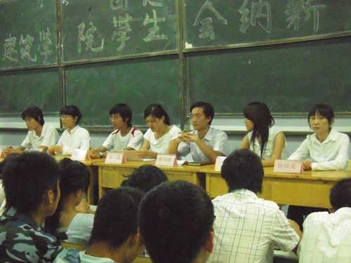 9月8日晚,建筑学院团总支及学生会纳新大会在1教200阶举行。会场内座无虚席,气氛热烈。08级新同学们对加入建筑学院团总支及学生会表现出了热切的期盼与渴望。