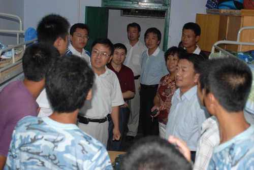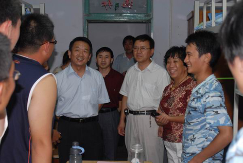 学院领导分别来到男生1公寓、女生7公寓和男生A、B、C区公寓,走访了我院以及有我院代管的其它三个学院的部分学生宿舍,代表人文社科学院对新生的到来表示了热烈的欢迎和深切的慰问。谭业庭院长、王众臣书记和林桂梅副书记等领导还亲切的对学生进行了询问,了解学生的家庭情况以及是否适应环境,是否有困难等;并且还特意询问了来自外地的学生,对他们的适应情况进行了详细的了解,同时还指出,要来自五湖四海的同学互相关心,特别是山东的学生要对来自外地的学生要更加照顾,互相团结,共同学习。在最后,谭院长和林副书记等领导还关照学生,在军训期间一定要注意身体,防止中暑。