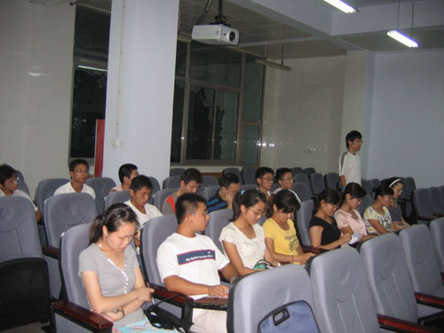 杨成文副院长首先介绍了出席会议的学院领导、职能机构老师及硕士生导师,然后新同学分别做了自我介绍。接下来,由商学院院长杨荣本讲话,他首先代表学院全体老师对08级研究生的到来表示热烈欢迎,然后介绍了商学院的基本情况,包括机构设置、师资力量、办学条件、专业建设,向同学们通报了近年来学院在教学科研方面取得的成绩和工作的进展,同时,要求08级同学在研究生期间能够专注于学业,专注于研究领域,刻苦认真,脚踏实地做好学问,最后他预祝同学们能顺利通过两年半的学习,拿到硕士学位。杨成文副院长接下来介绍了学院研究生培养模式和培养环节,并详细介绍了培养方案。最后,师生进行了互动交流,老师们对学生提出的注会考试等问题做了详细的解答。