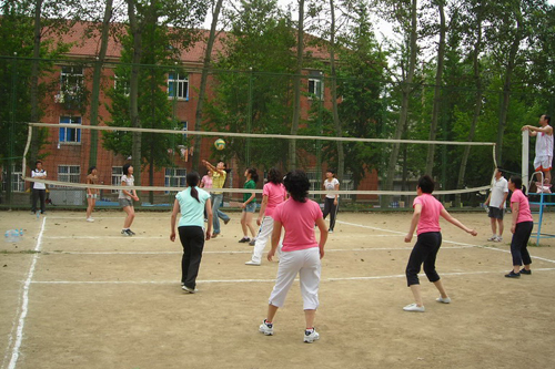 30号下午,进行了联谊活动排球赛部分,分为女教工——女生和男教工和男生两场比赛,从现场来看,教师队的优势是配合较好,技术熟练,学生队的优势是反应较快,但配合不够熟练。结果女教工队和男教工分别2:0直落两局,分别击败对手。