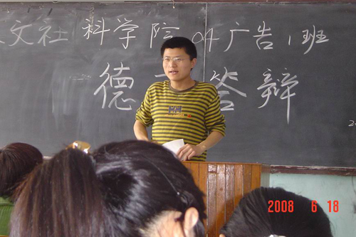 6月18、19日,由人文学院党总支举办的“08届毕业生德育答辩”在1教504教室举行。人文学院成立的“毕业生德育答辩评审委员会”由学院党总支副书记林桂梅、团总支书记刘聘、辅导员东忠方、李淑云,化磊,张平和毕业班04级广告、社工、影视动画各班班主任组成,委员会全体成员出席了本次答辩。