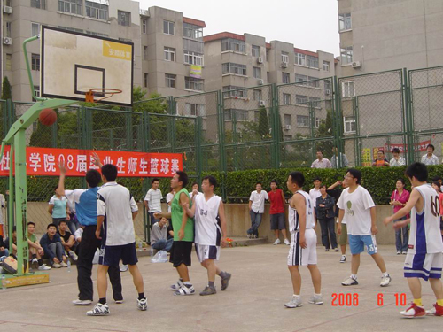 6月10日下午,人文社科学院在校篮球场举行了08届毕业生师生篮球赛。学院院长谭业庭,总支书记王众臣,副书记林桂梅观看了比赛。本次比赛是学院08届毕业生文明离校系列活动之一,旨在增进师生之间的情感交流。此次比赛分为教职工队与毕业生队,经过紧张激烈的角逐,教职工队以79:71夺得比赛桂冠。