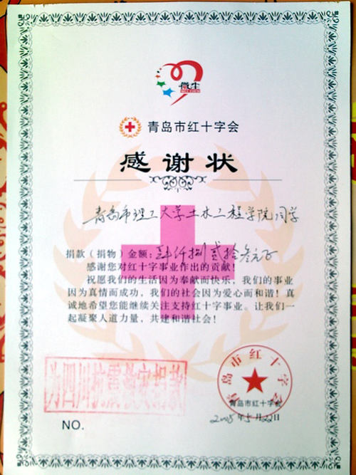 同学们还热烈响应校团委和学院的号召,纷纷慷慨解囊,从并不丰裕的生活费中捐出大部分献给灾区,捐款不在多少,体现了同样无价的真情。据不完全统计,累加通过手机短信、参与现场募捐、学生党员交纳特殊党费等形式实现的捐款和5·21祈福会现场募集的4823元捐款,土木工程学院学生已向灾区捐款约两万元人民币。(张继清)
