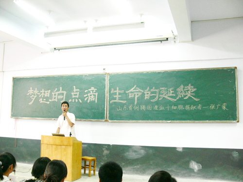 山东省首例跨国干细胞捐献者张广蒙来费县校区作报告