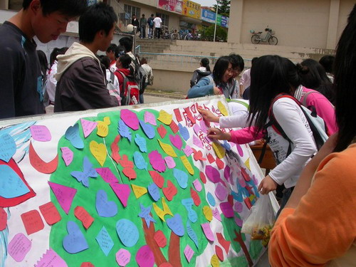 这次活动为大家提供了一个平台,把平日里因忙碌或羞于表达的情素跃然于纸上,重拾一颗颗感恩的心。同学们纷纷涌上前去写祝福语,随后再把卡片贴到橱窗里展示。橱窗的前面更是人流攒动,脸上都洋溢着迷人的笑容,我们更同分享着这份祝福,它牵动着我们每个人的心,其中一句“妈妈,我爱您”更是让人感动,他没有华丽的文字,没有过多的修饰,直白的表达却格外感人。更有同学直接在现场打电话给父母。此情此景,成为校园中一道亮丽的风景线。