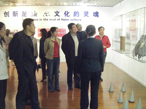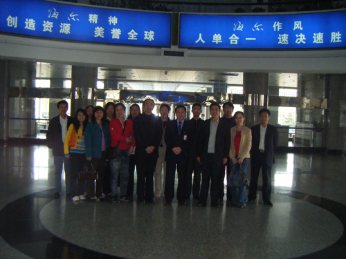 为使党员亲身感受改革开放以来的伟大历史进程和宝贵经验,加深对十七大精神的理解,4月20日,机械学院全体教工党员在党总支书记王廷和的带领下,来到了海尔集团参观学习。首先海尔集团韩部长与教工党员亲切座谈,并详细介绍了海尔企业文化及发展战略。海尔集团创业二十余年,从一个资不抵债、濒于破产的集体小企业到今天享有世界声誉的跨国公司,在首席执行官张瑞敏的领导下,海尔成为中国引以为傲的改革开放时代的民族英雄。作为世界第四大白色家电制造商、中国最具价值品牌,海尔在全球30多个国家建立本土化的设计中心、制造基地和贸易公司,全球员工数超过5万人,2007年海尔集团实现全球营业额1180亿元。在首席执行官张瑞敏确立的名牌战略指导下,海尔不断进行战略改革,先后实施名牌战略、多元化战略和国际化战略,2005年底,海尔进入第四个战略阶段——全球化品牌战略阶段。开放的市场浪潮中,海尔不断创新,不断挑战自己,面对众多强大的竞争对手,在激烈的市场竞争中保持着连续高速的成长态势,多年的拼搏努力,使海尔品牌在世界范围的美誉度大幅提升。交流结束后,王廷和书记对今天的参观活动进行了总结,使全体党员更进一步的明确和深刻理解了本次活动的主题。