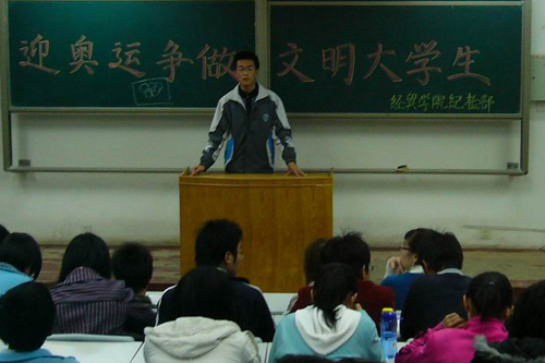 为迎接即将到来的奥运会,使大学生更好地意识到自身的文明行为是国家精神文明的最好体现,经贸学院于4月15日举行“迎奥运争做文明大学生”演讲比赛。