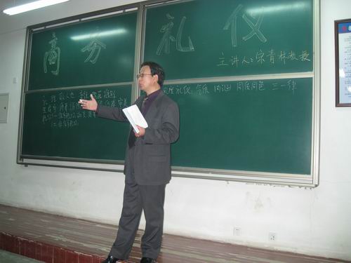 宋教授以欢迎时鼓掌为切入点,展开了仪表风度礼仪、言谈举止礼仪、称谓礼仪、办公礼仪、电话礼仪、介绍礼仪、宴请礼仪、致意礼仪、鼓掌礼仪、名片礼仪、出行礼仪十种礼仪方式的说明。他提出,礼仪是人们在社会交往中所形成的并应自觉遵守的一种行为准则及规范;并引孔子之言曰:礼者,敬人也,阐释给以礼之原则立场。其中,关于仪表风度礼仪的精辟介绍引起在座同学的共鸣,博得阵阵掌声。