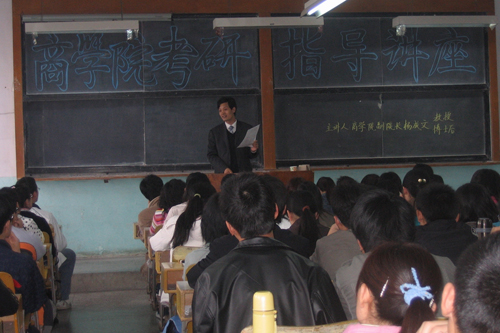 4月7日下午,商学院2009年考研指导讲座在1号教学楼632教室举行。此次讲座由商学院副院长杨成文教授主讲,商学院2005、2006级学生聆听了此次讲座。
