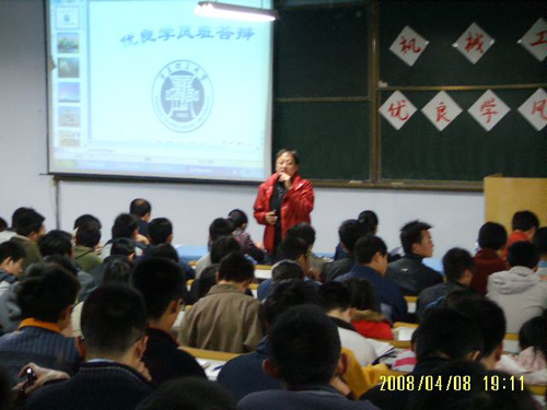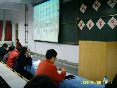 为进一步加强优良学风班的创建工作,为班级的发展提供展示的平台和交流的空间,4月8日下午,机械工程学院07——08学年第一学期优良学风班答辩大会在一教200阶隆重召开。教务科范学工科长、学生处刘海英老师、机械学院李长河副院长、党总支薛炜华副书记、团总支贺治成书记应邀到场并担任评委。大会由学院辅导员柳超老师主持,300多名同学到场观看了答辩。