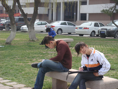 大赛规定参赛同学自己选景,一个小时内完成,集合时间定在上午10点钟。来自学院各个班级的同学报名踊跃。接近10点时,建筑馆门前已经是人潮涌动。学生会的同学把比赛用纸发给参赛的同学,并开始计时。随后的一个小时内,校园各处都可以看到手执画笔的参赛同学。他们专注的神情引起了不少路过同学的注意。