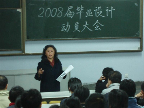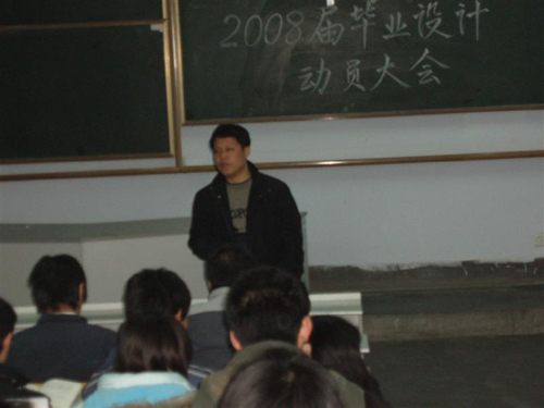 1月9日下午,计算机学院在204阶召开了2008届毕业设计动员大会,计算机学院院长兼党总支书记王斌,副院长张秀虹、王日宏和所有指导老师出席了会议,全体毕业生参加了动员大会。