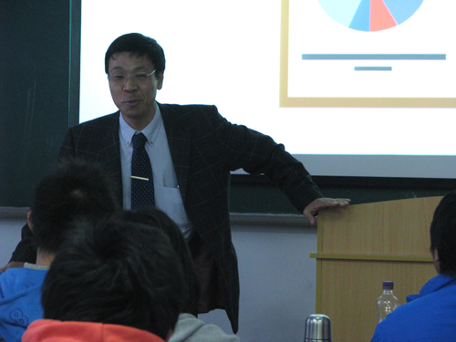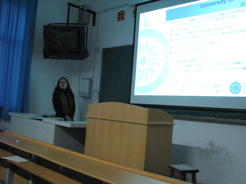 马博士和蒲主任向学生详细介绍了关于格林威治大学的有关情况,包括学校周围的环境、学校的课程、学校课程的认证、出国的条件以及出国的签证手续及收费等方面内容,并针对学生的提问作了详实的答复。