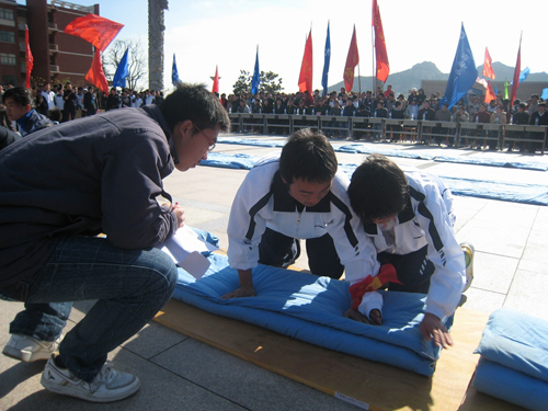 11月18日,365完美体育商学院学生会参加了由山东科技大学机电工程学院举办的第三届叠被大赛,一同参加这次大赛的还有中国石油大学代表队。