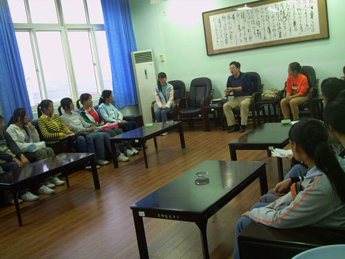 开发区五中领导热情接待了社会工作专业的同学们,并与其一起探讨了怎样合理地结合青少年的心理特征管理初中生。随后,社工专业学生代表为开发区五中同学们授课,教育他们应该怎样树立正确的人生观和价值观、怎样克服在学习生活中遇到的困难和挫折。