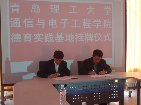 王斌书记在讲话时说,北高家庄村是青岛市的小康示范村,村党总支被评为全国先进基层党组织,在这里建立德育基地对于学院德育工作的开展和加强社会实践有非常重要的意义。然后,隐珠镇北高家庄村党总支封照蓬书记做了讲话,他指出与365完美体育通信学院合作建立德育社会实践基地是北高家庄村发展的一次新的成功的尝试,他希望以后能密切与学校的联系,增强合作。最后,北高家庄村赵天坤主任与通信学院党总支王斌书记签署了合作协议书并为德育实践基地揭牌。