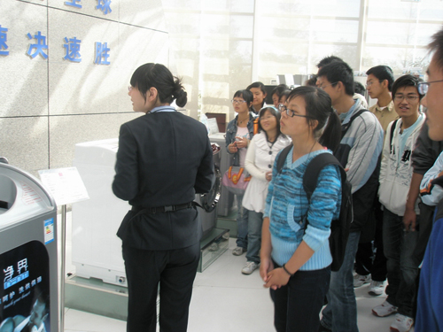 上午8:30,协会的同学们到达了工业园,受到海尔方面的热情接待,海尔专门安排了一名工作人员引导同学们参观,进行讲解,介绍了海尔从1984年诞生后,一直保持迅猛发展的势头,品牌价值从1995年的50亿达到2006年的749亿,2006全球营业额达1080亿。海尔白色家电领军世界的同时,海尔的黑色家电也逐步走向成熟。