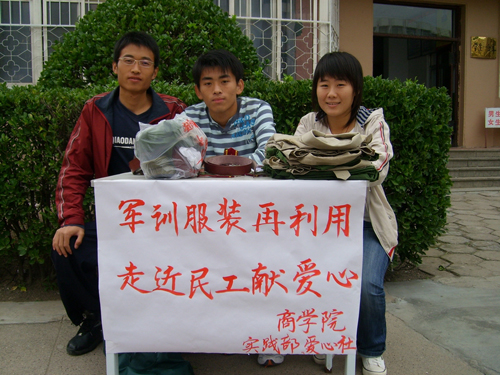 商学院搜集军训服装捐助农民工
