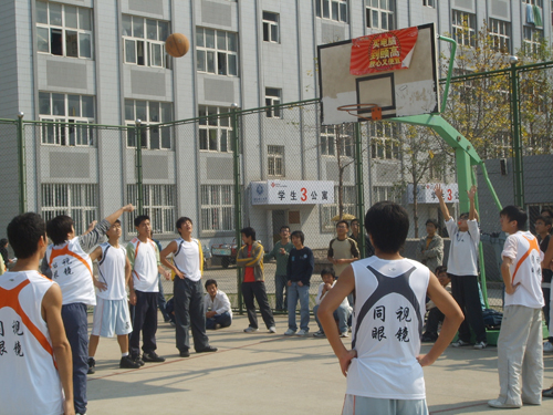 10月16日中午,机械工程学院第二届篮球赛在北院篮球场落下帷幕,05级机械3、4班联队夺得冠军,06材料1、2班联队获得亚军,团总支书记贺治成为获奖球队颁奖。