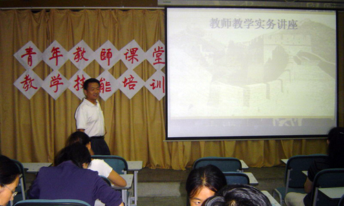 王众臣教授从教二十五年以来,积累了丰富的教学经验,在理论和实务方面都有独特的研究,曾多次对青年教师进行教学方面的培训。在本次培训中,王教授首先带领青年教师学习领会了胡锦涛总书记对青年教师的“四点希望”——爱岗敬业,关爱学生;刻苦钻研,严谨笃学;勇于创新,积极进取;淡泊名利,志存高远。接下来,王教授从大学教育原则,备课、写教案的方式,课堂教学的组织等几个方面进行了具体的阐述。王教授经过多年经验总结认为,教师教学的前提是对教学大纲的理解和掌握,并应该深入了解教材体系,针对学生的不同实际情况进行授课,与此同时,多种教学方法的灵活运用也是必不可少的。完整的教学体系,认真的教育态度,才能引导学生进入学习的主体地位,开动思维器官,学会学习,以此提高学生分析、解决问题的能力。王教授指出,身为一名教师,教授知识并不是唯一的职责,教师更应该关心学生的日常学习生活,尊重学生的学习成果,才能更好地履行教师应有的责任。近两个小时的讲座,使人文社科学院各教研室的教师都受益匪浅。最后,谭院长对会议进行了总结,明确指出了教师对学校对学生的责任和肩负起作为教师的神圣使命的重要性,并寄希望于青年教师,提出了四点要求:虚心学习,认真研究,精心设计,大胆尝试。