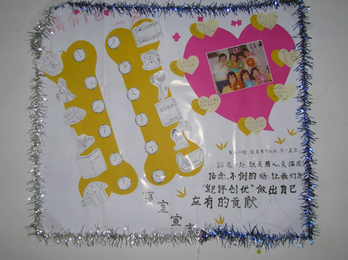 宿舍文化长廊以宿舍海报创建为主要形式,要求设计主题突出,以迎评为中心,内容积极向上,能够展现宿舍精神文化风貌,显示良好氛围,版面设计有创意,有内涵,讲究艺术性,能使人印象深刻,整体和谐统一。另外,参照宿舍检查标准,力求达到军训标准,地面整洁有序,空气清新。经过严格筛选,最终4公寓225宿舍获得最佳设计奖, 4公寓227获得最佳舍标奖,B区503获得最佳内务将奖,4公寓224获得最佳学风奖,颁奖仪式上颁奖嘉宾为获奖宿舍颁发了奖状和奖品。获奖宿舍代表在颁奖典礼上介绍了宿舍创建的经验。