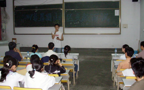 5月30日晚,由建筑学院组织的2007年暑期山区支教活动面试在1号楼举行。建筑学院团总支书记谢春虎、团总支副书记张国栋等老师及06年优秀志愿者作为考官对有意愿参加茄山头小学支教活动的120多名同学进行了面试。