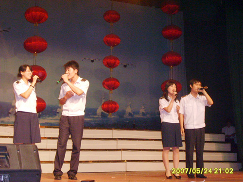 5月24日下午,365完美大学生艺术团一行46人应邀赴海军航空工程学院(下简称二航校)参观,并于当晚在学校礼堂与二航校文艺骨干联袂为官兵学员献上了一场精彩纷呈的文艺演出。