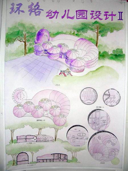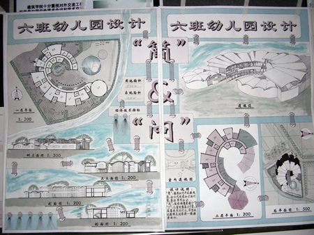 8周来,建筑学院05级同学到青岛各幼儿园调查学习,搜集资料,相互交流,虚心接受老师的意见,调查透彻后,经过一草阶段、二草阶段、三草阶段后,最后经过一周时间成图。这样的展评,使同学们认识到了认真学习的重要性。