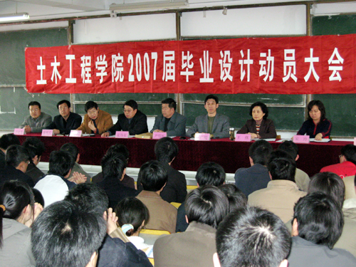 3月30日下午,土木工程学院在1#教学楼400阶教室召开2007届本科生毕业设计动员大会,校长助理张伟星、督导教师尹明昕出席了动员会,土木工程学院领导班子、全体指导教师和全体本科毕业生参加了会议。会议由刘健书记主持。