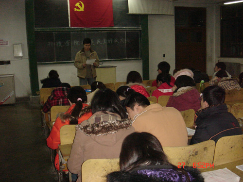 12月27日晚上,环境学院学生党支部召开全体学生党员大会,进行党员年终民主评议,互查问题,共同提高。