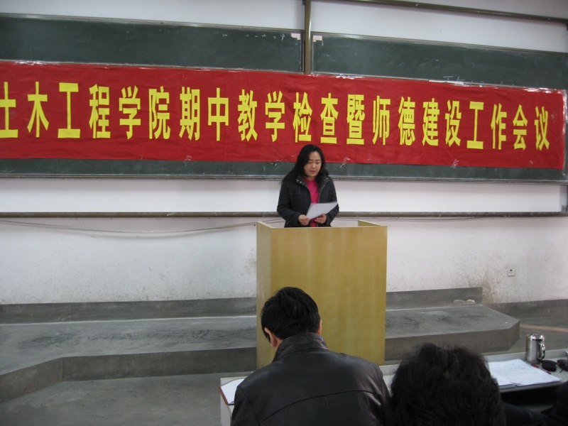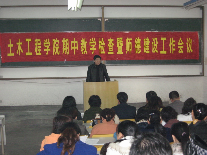 土木工程学院期中教学检查暨师德建设工作会议的召开非常及时和重要,对于贯彻落实学校的政策方针,统一全院教职员工的认识,增强敬业精神和服务意识,全身心投入到迎评创优工作中去具有特殊意义,必将使土木工程学院的教学管理水平提升到一个新的高度。(张继清)
