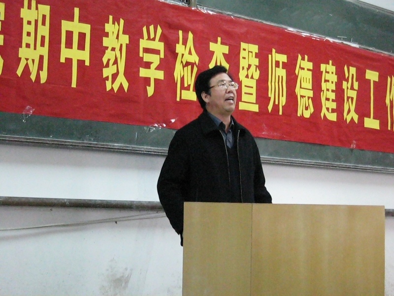 于广明院长针对期中教学检查问题不少、不容乐观的情形,向在场的每一位教职员工提出两个尖锐的问题:作为教师,我们是否称职?还想不想干?紧张严肃的气氛更加浓烈。