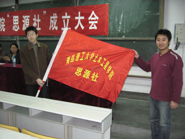 成立大会上,校团委许科老师为“思源社”授旗。全体社员还进行了入社宣誓,社员代表进行了发言。