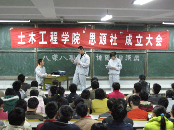 学生党员、“思源社”社长孟令健向大家介绍了近期的工作计划和远期的工作展望时说,近期“思源社”的工作重点将放在加强对团员的先进性教育,因此,思源社将与土木工程学院学生会合作,积极参与关于“八荣八耻”的巡讲活动中去。与此同时,将针对“‘三个代表’重要思想与大学生的日常实践”等话题,邀请学校的相关领导,为广大同学做一些讲座,我们还将定期通过组织同学们观看各种题材的优秀电影和演讲朗诵比赛,来开阔同学们的视野,并达到一定的教育意义。