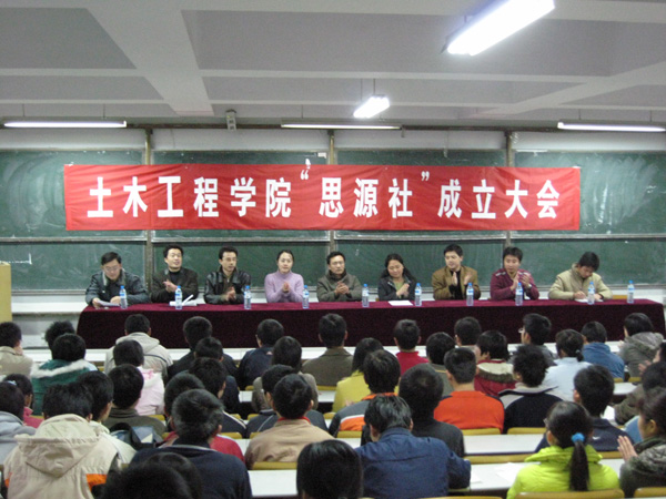 宋玲副书记发表了热情洋溢的讲话。她首先代表土木工程学院向“思源社”的成立表示热烈的祝贺,向各位新成员积极踊跃的加入到这个团体中来表示热烈的欢迎。她在讲话中说,在当前人才的培养中,政治理论的学习永远是应该放在首位的,思想素质的提高对于指导个人的学习和实践都有十分重要的意义。土木工程学院向来重视大学生的思想建设,对于学生党员和团员都有一套完整的教育与考评细则。在这种情况下,“思源社”的成立为大学生的理论修养提供了一个新的平台。“思源社”的成立,对于学院学生教育工作必将起来积极的引导意义。