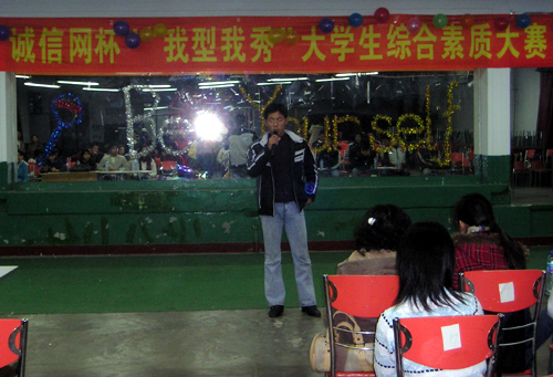 为进一步加强德育工作,提高广大同学的思想道德素质和文明素质,创建优良学风,营造和谐校园,机械学院积极响应学生处提出的“明礼诚信、励志成才”主题教育活动,于11月30日在大学生俱乐部举办了一场诚信网杯“我型我秀”大学生综合素质大赛。