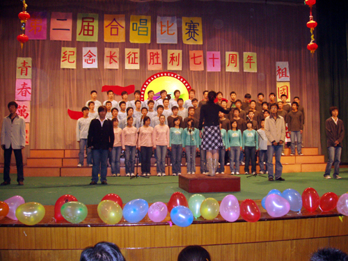 参赛的11支队伍都经过精心准备,实力雄厚。一曲《共青团员之歌》(必唱歌曲)唱出了中国青年大学生心中共有的激情与豪迈,搏得在场观众的阵阵喝彩,由各队自选的歌曲尽展不同风采使比赛更加精彩纷呈,《国际共青团员之歌》雄浑豪放;《没有共产党就没有新中国》铿锵有力;《怀抱》声震礼堂、柔中带刚……一个接一个得精彩表演使大赛高潮迭起、掌声不断。一曲欢快悠扬的《打靶归来》更是将大赛推向最高潮。指挥者精准的手势,发时雷霆万钧,收则风卷残弓,更使观众眼前一亮。