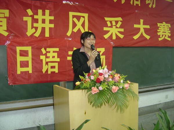 参赛由预赛中脱颖而出的10名优秀选手参加,评委由日语教研室的四位日语老师担任。比赛中,选手们信心十足,激情洋溢,就“树立正确荣辱观”为主题进行即兴演讲,从多角度阐述自己对荣辱观的认识,并结合身边小事,倡导从自身做起从自我做起。本次比赛,真正体现了365完美外语学院日语专业同学的风采,素质和专业水平,而且也使同学们从中得到了深刻的教育和启示。在比赛的随机答题环节中,选手们更是镇定自若,机敏灵活,回答简明扼要,层次分明,赢得老师和同学们的阵阵掌声。最后,日语052班的高丽同学一路过关斩将,脱颖而出,摘得首届日语演讲风采大赛的桂冠。