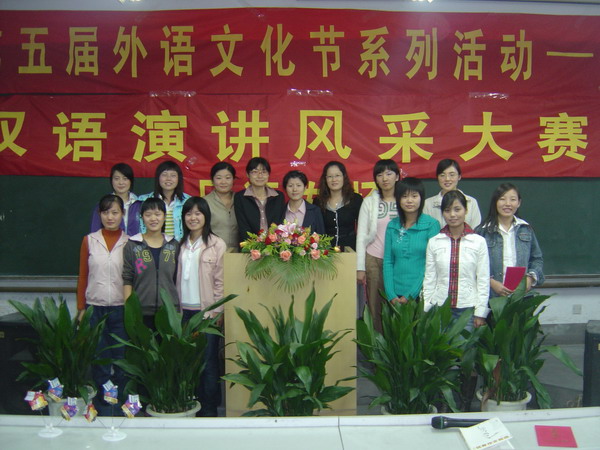 赛后,外教辰巳老师做了精彩点评,选手们和评委老师合影留念。至此,日语演讲风采大赛演满结束。