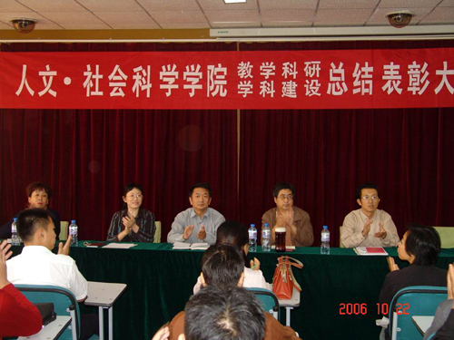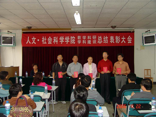 陈国庆副院长宣读了在学科建设和教学科研方面受到表彰的老师名单及获奖项目,并向获奖者颁发证书。随后,陈副院长针对人文学院教育教学工作的现状,从四个方面进行简要的总结,他指出了学院工作目前存在的不足,并提出了具体的发展规划。赵成文副院长从教学的整体状况,青年教师讲课比赛,迎评工作以及贯彻学院“十一五”发展规划等四个方面做了系统总结。他希望,教师们多关注学科的前沿问题,平时多练笔,把研究生教学质量的工作做好,每位老师都应有个人长远的科研目标。