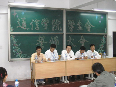 10月20日晚7点,通信与电子工程学院第三届学生会誓师大会在2教阶梯教室203隆重举行。通信学院党总支副书记王乐生、团总支书记柳志广、辅导员刘伟春、学生会主席郭鹏、副主席蔡金杭、校区学生会主席王戈以及各兄弟学院的学生会主席应邀出席了大会。大会由黄利引同学主持。