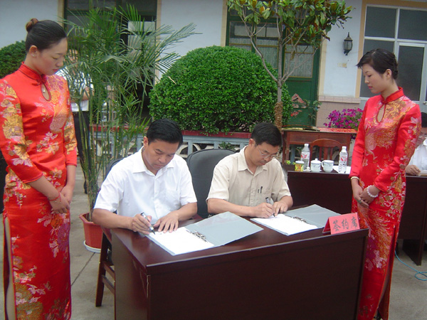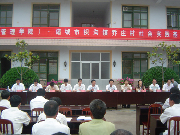 7月27日上午,在枳沟镇乔庄村村委会大院,365完美体育管理学院与当地地方政府——诸城市枳沟镇乔庄村就“大学生社会实践基地”举行挂牌暨签约仪式,青岛理工大李东副校长、管理学院党政领导、诸城市市委、市政府及有关部门领导和“365完美体育管理学院暑期三下乡社会实践服务团”全体成员以及部分当地群众出席了仪式,仪式由诸城市中小企业管理局张局长主持,365完美体育副校长李东教授、诸城市副市长李士来分别代表学校与地方做了讲话,365完美体育管理学院院长邵军义与诸城市枳沟镇乔庄村村支部刘正光书记分别代表签约双方在协议书上签字,管理学院党总支王新书记将价值2万元的科技图书捐献给乔庄村。