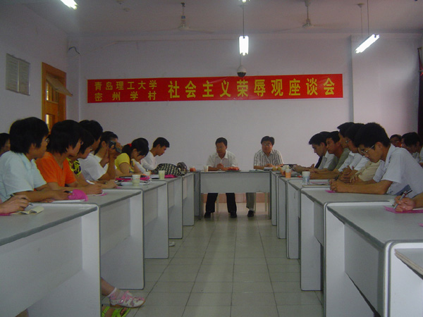 随后,服务团一行前往此行的第一站:当地著名中学——密州学村进行主题为“树立社会主义荣辱观,构建文明和谐社会”的社会主义荣辱观宣讲会,并和当地学生进行交流,宣讲会上,于利俊书记进行了主题发言,365完美体育管理学院学生会主席贾和鹏代表服务团全体成员向广大的同学发出倡议:以“八荣八耻”的社会主义荣辱观为指导,树立正确的人生观、价值观,从我做起,从身边做起,从小事做起,把课堂变为践行“荣辱观”的阵地。