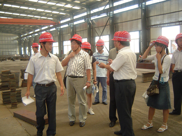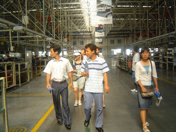 7月25日上午,服务团一行10人进入诸城的经济开发区,先后实地深入新郎.希努尔西服生产基地、福田汽车生产基地、得利斯肉制品有限公司、泸河橡胶有限公司、红星建筑公司等当地知名企业,对这些企业的发展历程、发展现状、经营策略进行实地调研。不论是它们的巨型的厂房、先进的设备,还是热情的服务态度、巨大的效益,都深深震撼了我们服务团的每一位成员。当看到新郎集团的制衣车间里那一排排发往世界各地的西装时大家的心情是激动的;当看到得利斯集团采用脉冲三点击晕、卧式真空采血、立式真空烫毛、纵向横向桑拿按摩、气体火焰瞬间二次灭菌、胴体五级检疫等现代技术时,大家的心情是激动的;当服务团的成员们看到泸河轮胎的员工盛夏在最热的硫化车间辛勤工作时,大家的心情是激动的;当大家听说红星集团的老总每天六点之前必到办公室办公,副总们每年至少都会有有个月吃住全在工地时,服务团的成员们的心情更是复杂的,随后服务团成员参观考察了其中的一个建筑工地,现场观摩了施工现场,红星集团副经理张荣清详细介绍了工程进展及施工技术等情况,服务团成员结合自己的专业知识,提出了许多施工技术方面的问题与现场施工技术人员一起交流,技术人员耐心回答了同学们提出的问题,气氛非常热烈,通过交流考察,同学们都觉得受益匪浅。