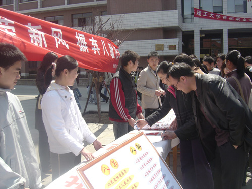 举行荣辱观教育签名活动并发放宣传画