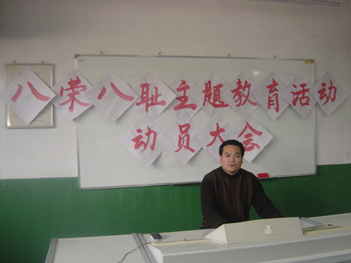 4月5日,外国语学院召开全体教职工大会,学习贯彻社会主义荣辱观精神。党总支书记孙思经指出,当前在全国全校范围内开展的荣辱观教育,是针对现在、尤其是“80后”一代青年的现状提出的。作为高校教师,更应从自我做起,从点滴做起,增强师德意识,牢固树立社会主义荣辱观,做“八荣八耻”的楷模、典范。只有这样,才能更好地教书育人,为人师表。对学生,我们要像对自己的孩子一样,关心他们的学习、生活,关心他们的成长和成才;我们不仅要传授给学生知识,更要教会学生怎样做人,把我们的学生培养成社会主义合格建设者和可靠接班人。
