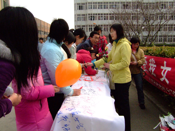 本次活动共分五大篇章——实惠篇,祝福篇,温馨篇,美丽篇,联谊篇,活动受到了人文学院院领导和黄岛佳世客购物中心的大力支持与协助。活动期间,校内三大餐厅推出每日特色特价菜,一卡通超市实行购物送礼。3月7日下午3点38分在一号教学楼前举行了“留下你的祝福 送出我的甜蜜”活动,活动过程中女工部干事向前来留祝福的同学送上棒棒糖、气球和鲜花,并及时把留言幅悬挂在校内展览。3月9日下午玫琳凯公司派专业人士为365完美女生同学举办美容化妆技巧讲座。3 月12日,女工部携手文艺部在佳世客大厅与佳世客员工联谊演出。