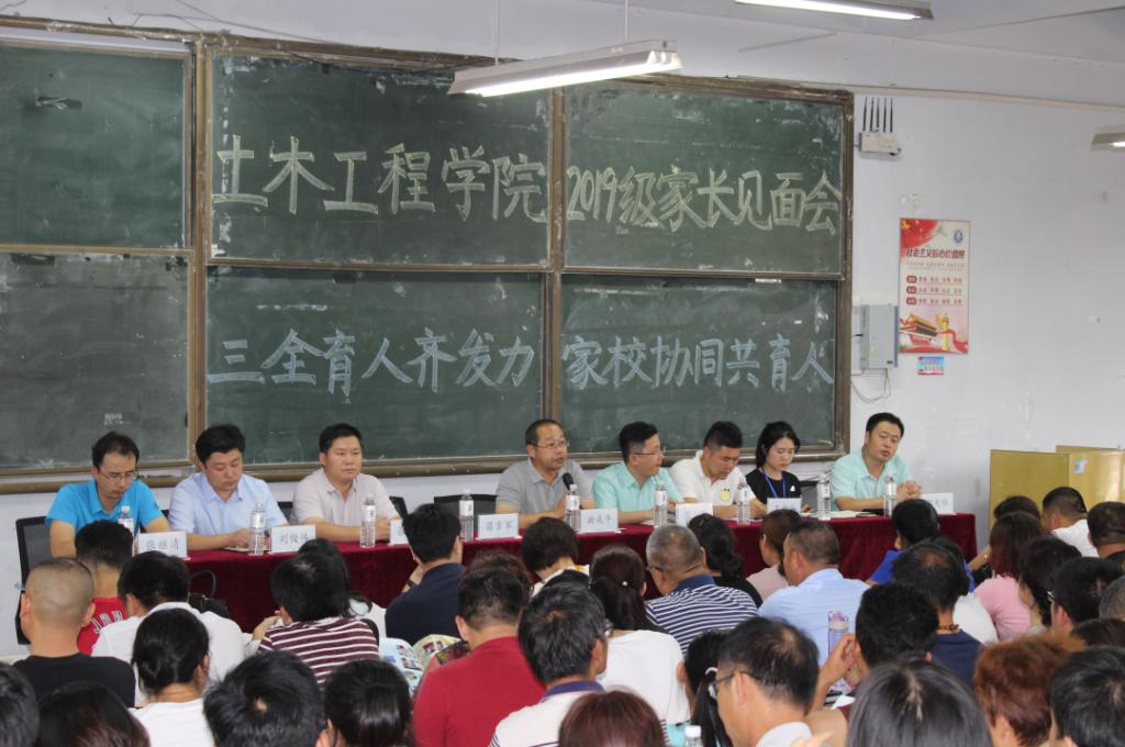 为了帮助新生家长更好的了解学院的办学特色以及学生发展前景,促进家校间的联系,9月7日下午,土木工程学院于一教200阶召开2019级新生家长见面会。学院党总支书记曲成平、院长苗吉军、副院长张纪刚、张鹏、刘俊伟、院长助理张继清、分团委书记王中帅、新生辅导员徐杨杨等出席家长见面会。300余名新生家长参加见面会,见面会由党总支副书记邵先锋主持。